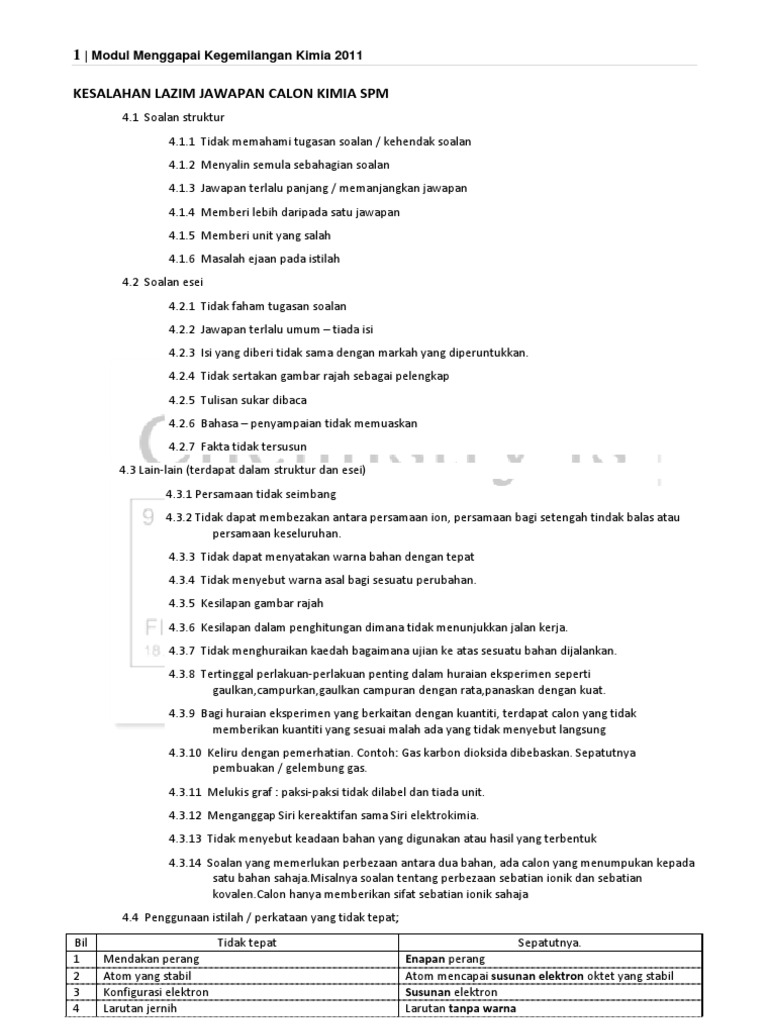 1 5 Kesalahan Lazim Dalam Jawapan Kimia Calon Spm Pdf